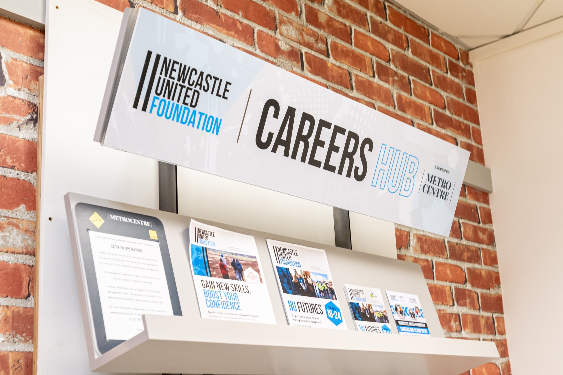 The Careers Hub is open weekdays between 9am and 5pm, with occasional evening and weekend opening hours. Opening times are displayed on-site and are updated weekly. For more information about the Careers Hub, email foundation.metrocentre@nufc.co.uk