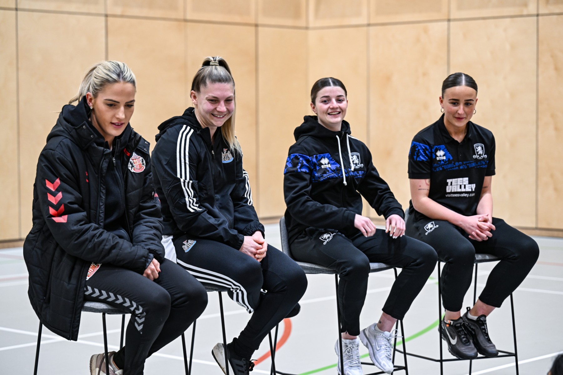 Following their session of small-sided games and skill-based activity, young players put their questions to Newcastle United Women’s Grace Donnelly, Sunderland AFC Women’s Louise Griffiths and Middlesbrough FC Women’s Kacie Elson and Sharna Wilkinson.